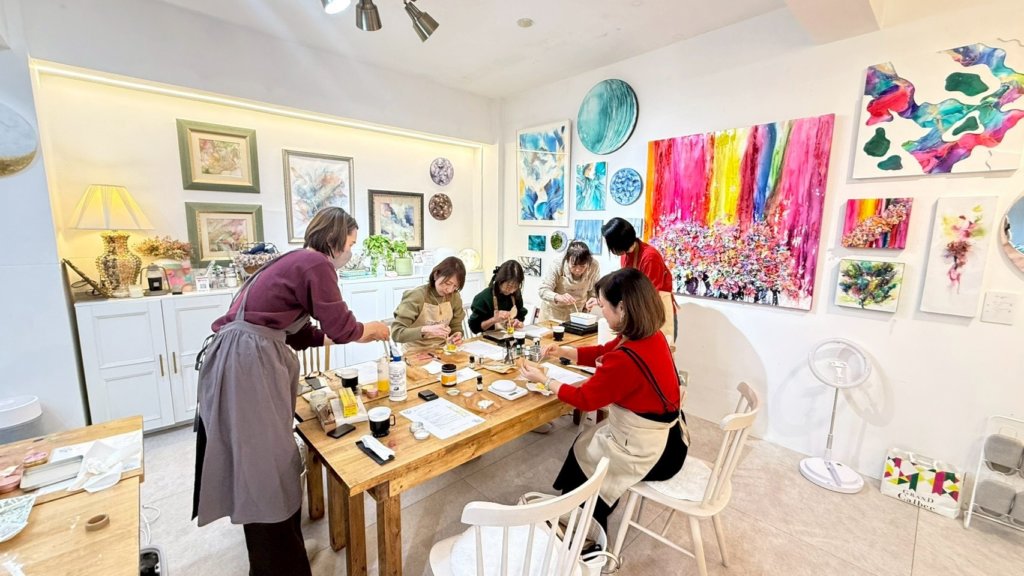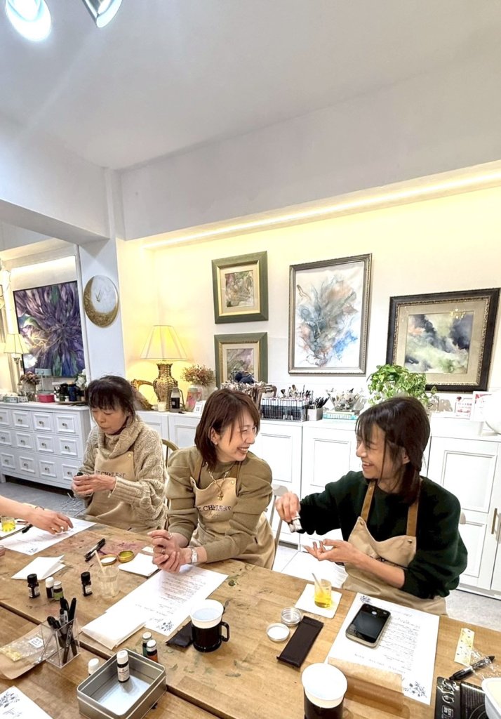 オリジナルの香りをまとったバームが完成したら、 次は アルコールインクアートの時間 !