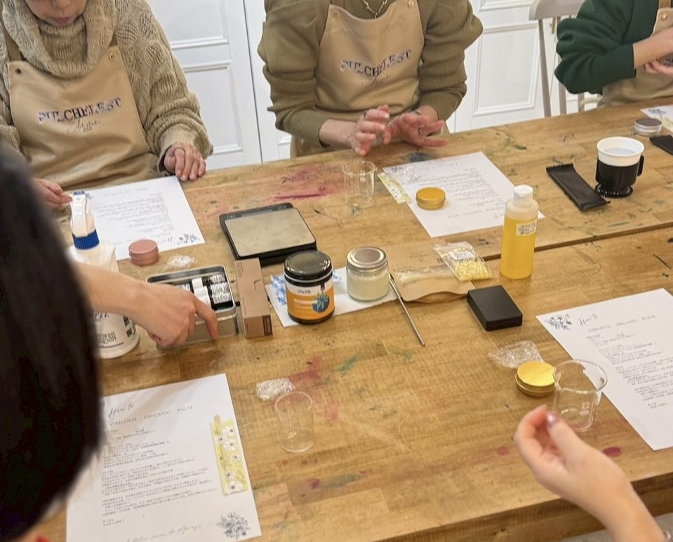 自分のためのオリジナルバームを作る時間は、 それだけで心と体がふっと緩むような感覚があります。